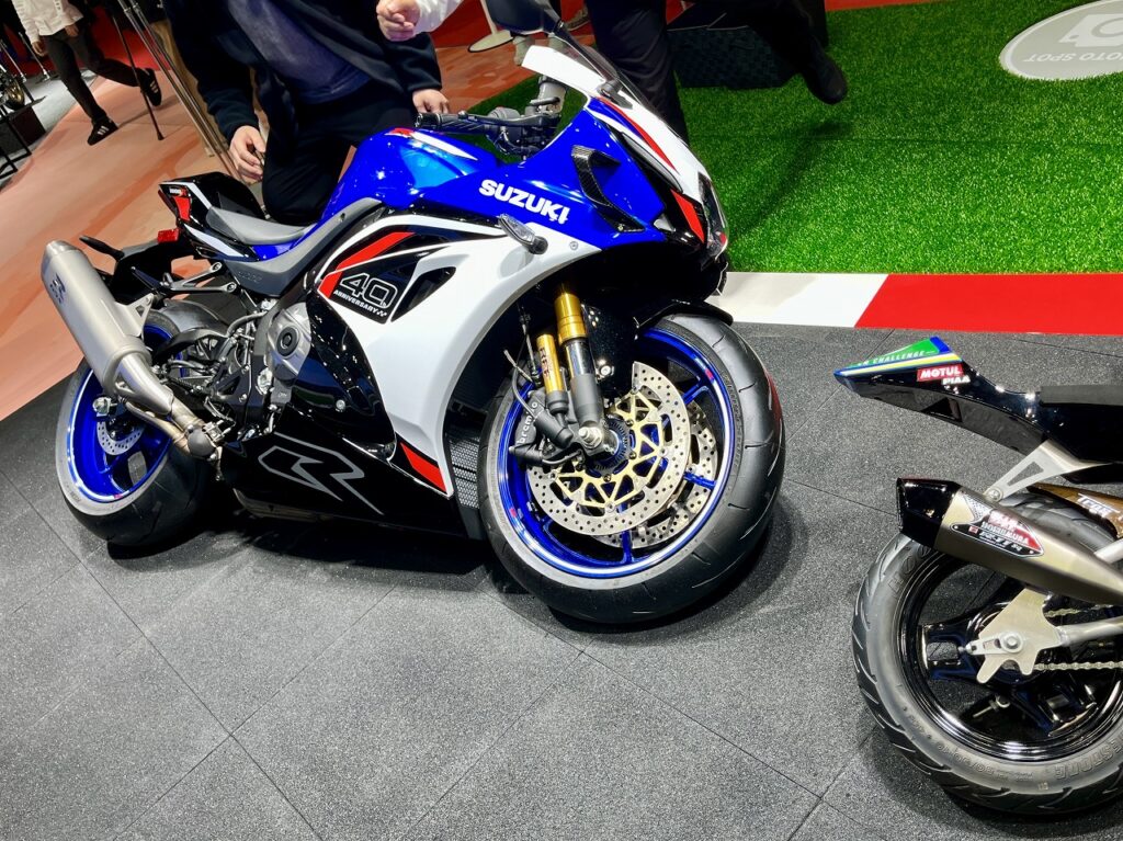 もちろん、現行モデルも健在です。スーパースポーツの最高峰「GSX-R1000R」や、ストリートカスタムのベースとしても人気の「DR-Z4SM」の姿もあり、やはりスズキのブースは熱量が違います。