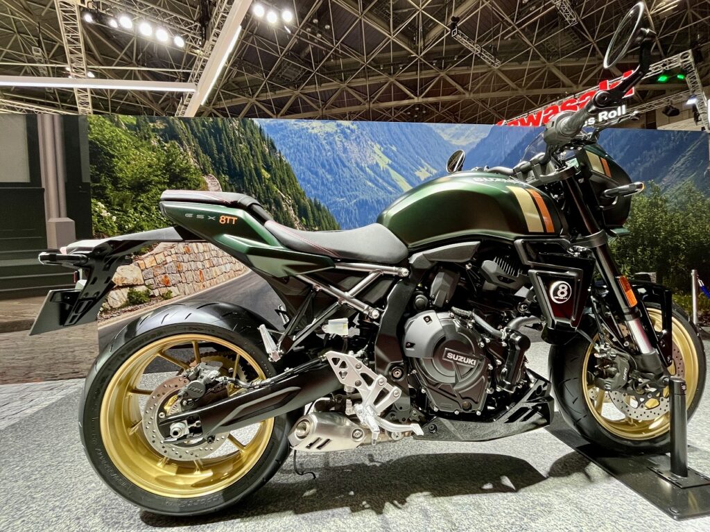 これは痺れました!現在人気のGSX-8Sをベースにしたと思われるコンセプトモデル「GSX-8T」と「GSX-8TT」。「T」はツアラーを意味していると予想され、8SやRの優れたプラットフォームを使ったアドベンチャー系ツアラーの可能性を感じさせます。
