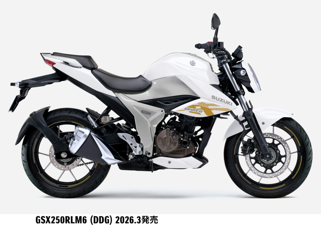 2026年モデルのジクサー250は、これまでのスポーティーなイメージから一転、街中に溶け込む洗練されたカラーリングへと進化しました。