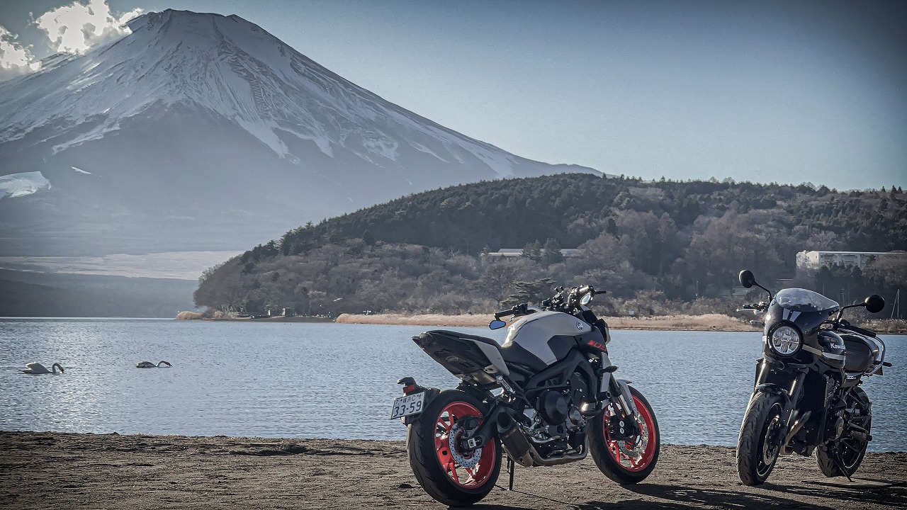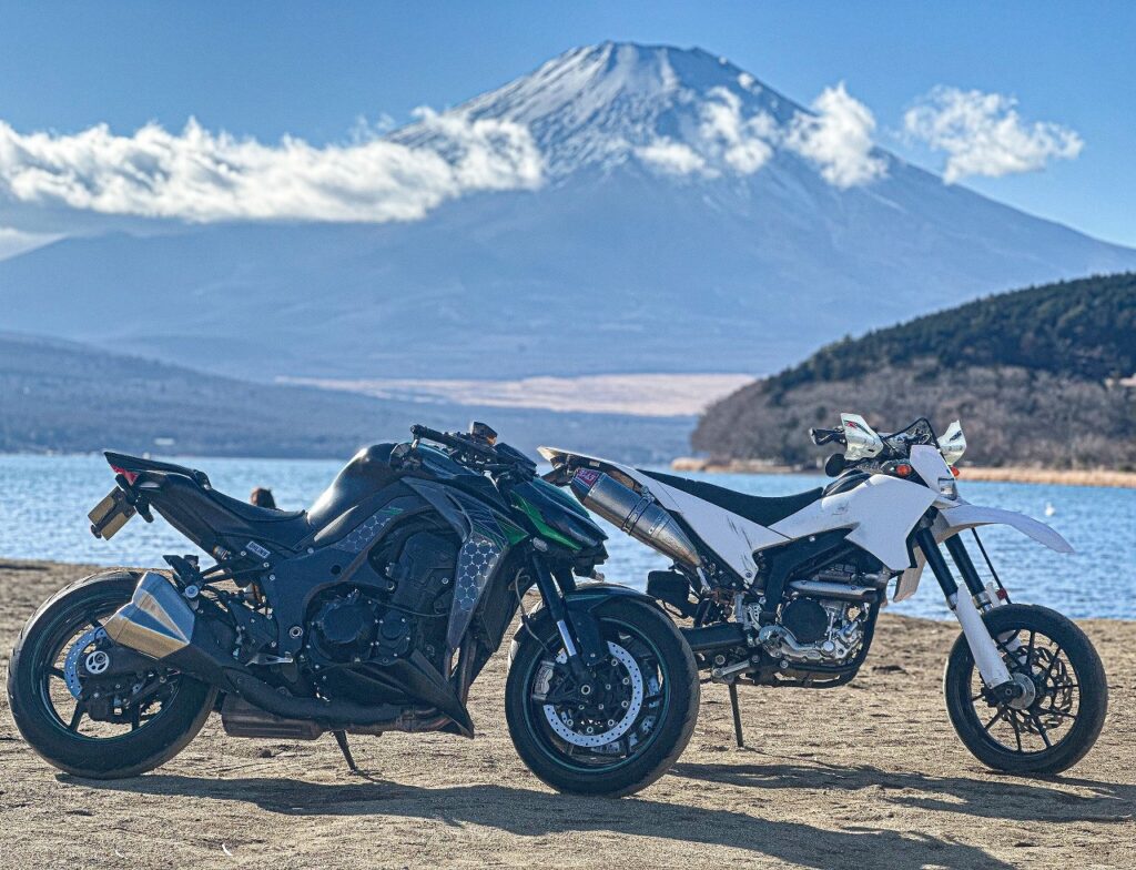 バイクを背景にした「湖と富士山と愛車」の一枚は、一度は撮っておきたいツーリングの記録です。