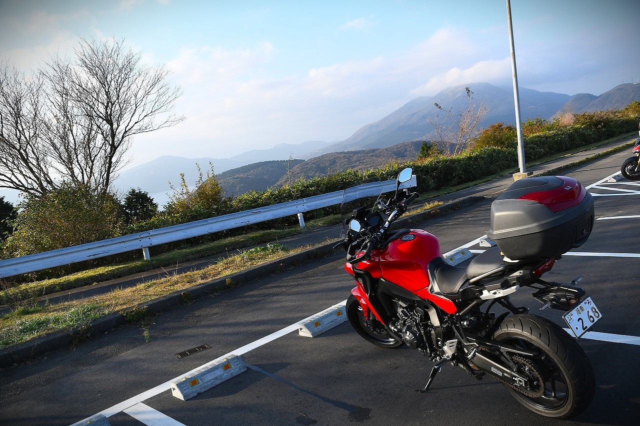 バイク駐輪も安心で、周辺にはヘアピンカーブが連続するターンパイク・旧道ルートなど、ワインディング好きにはたまらない場所です。