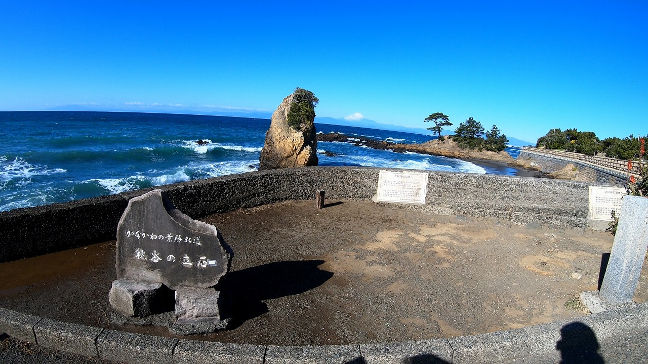 隣接する森戸海岸では、海辺の散歩や富士山の遠望も楽しめます。