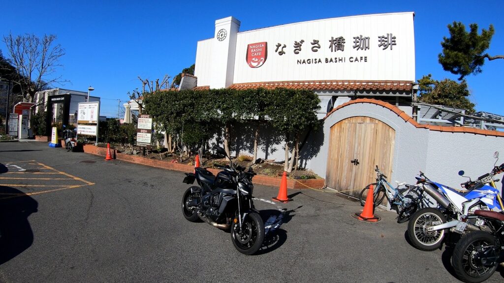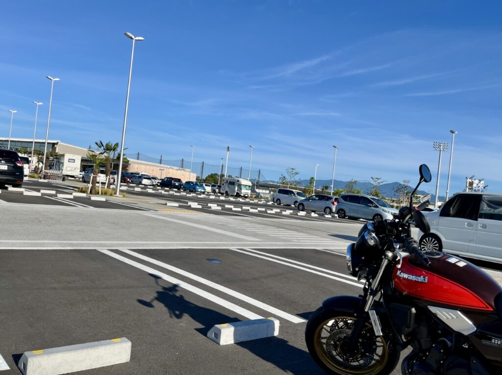 広い駐車スペースがあり、バイクでも気軽に立ち寄れる点が魅力。