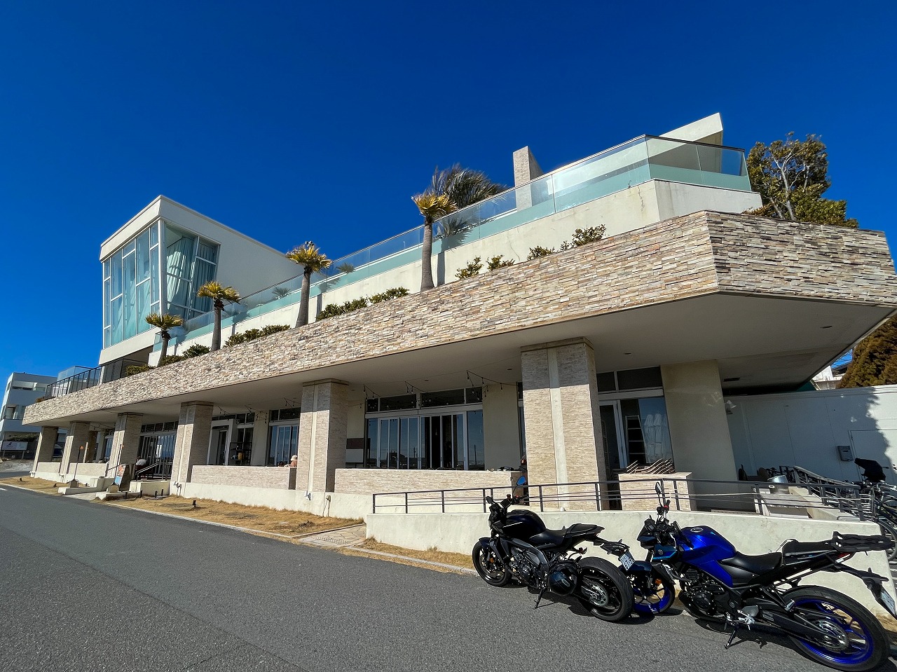 駐車場も広く、バイクで立ち寄りやすい設計です。海を眺めながらゆったりした時間を過ごしたい方におすすめ。