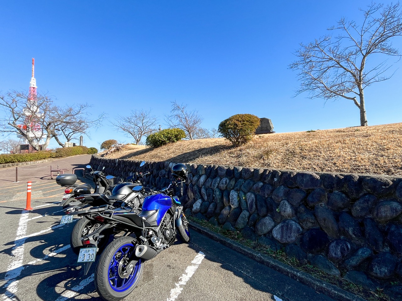 晴れた日には遠くに富士山も見えることも。バイク専用の駐車スペースもあり、気軽に立ち寄れるのもポイントです。