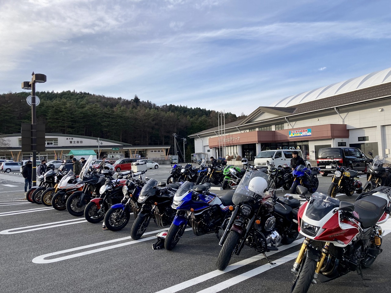 山梨県側にあるこの道の駅は、週末ともなれば数百台のバイクが集まることも。